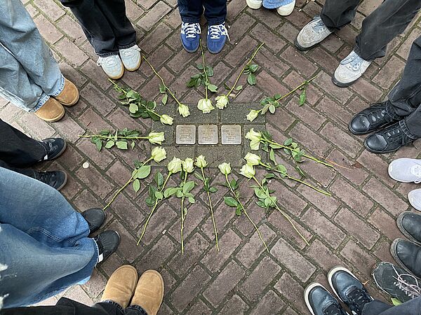 Um die Erinnerung an den Zivilisationsbruch des Völkermords wachzuhalten, waren heute etwa 400 Schülerinnen und Schüler aller weiterführenden Schulen Stadthagens in der Innenstadt bei den dort verlegten Stolpersteinen unterwegs. Die Klassen - für das WBG nahmen die 10. Klassen teil - gestalteten dort jeweils ihre eigene kleine Zeremonie, indem sie über die Biografien der jüdischen Menschen informierten, für die die Stolpersteine verlegt wurden, Blumen niederlegten, Reden hielten oder Gedichte verlasen. Zu diesem Gedenken angeregt hatte der Förderverein ehemalige Synagoge Stadthagen unter dem Motto "5 Minuten für 6 Millionen". Die Idee dabei ist, ein wenig von der eigenen Zeit zu investieren, um den 6 Millionen Ermordeten und allen Verfolgten eine Stimme zu geben.