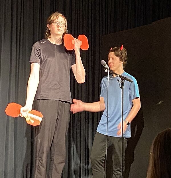 Die Mittelstufen-AG Darstellendes Spiel unter der Leitung von Malte Nussbaum zeigte mit viel Herz, wie die Pubertät einem das Leben schwer machen kann, wenn man gerade „mittendrin“ ist – in beidem, Pubertät und Leben.