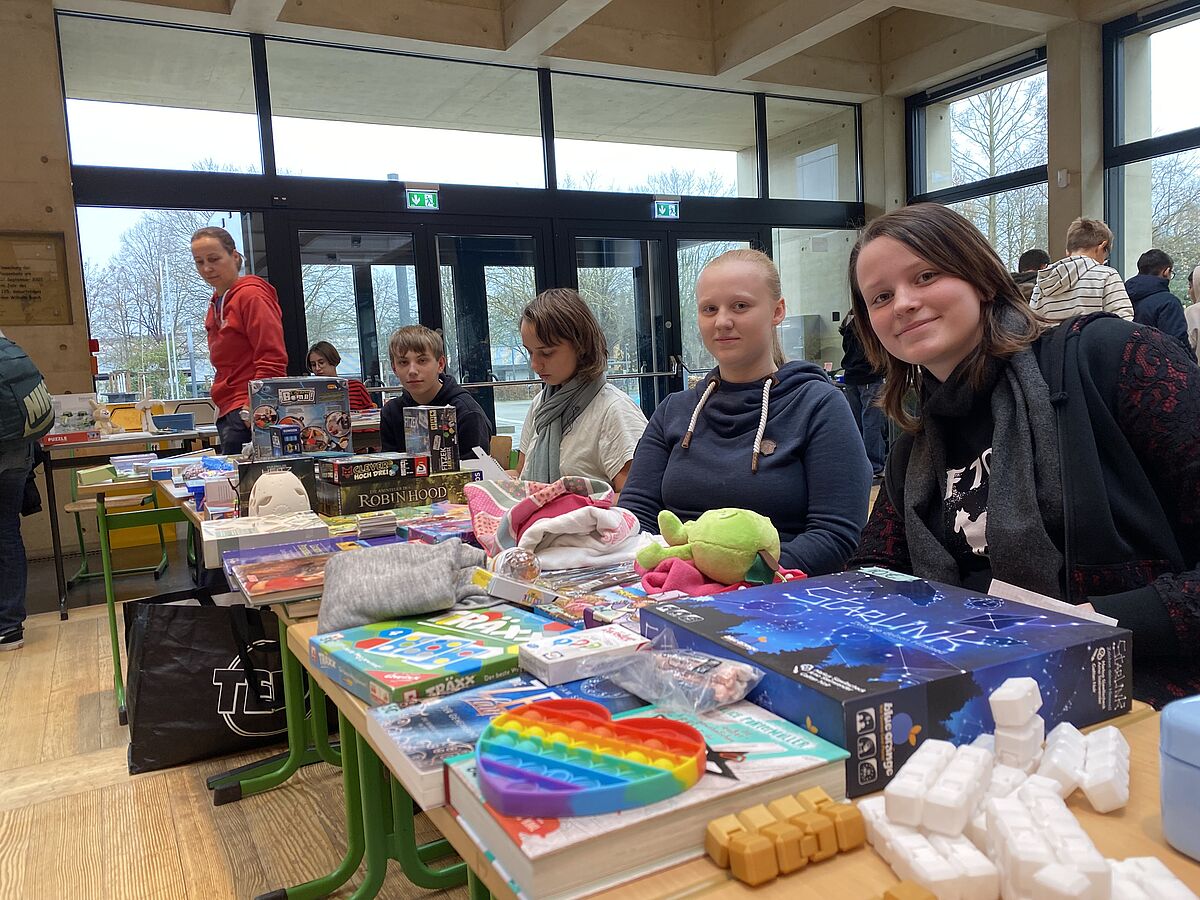 - Im Rahmen des Buddy Projekts übernehmen Schüler*innen Verantwortung zum Beispiel für die Ausleihe der Spielgeräte auf dem Schulhof.